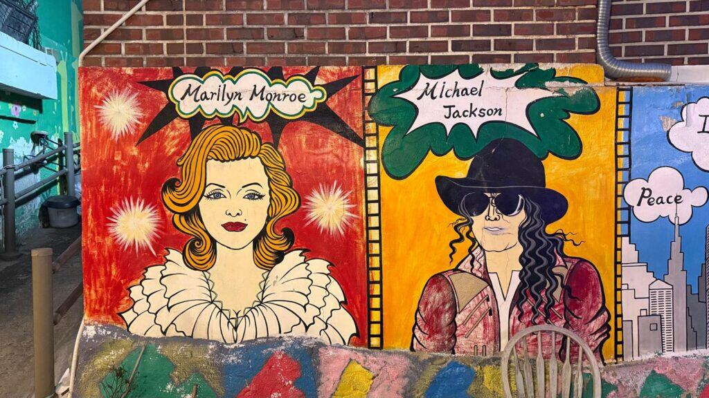 Qui le facciate delle case diventano tele a cielo aperto. Abbiamo trovato murales ispirati alle anime, personaggi delle fiabe, scene romantiche, animali stilizzati, paesaggi onirici e disegni pop dai colori vivacissimi. Alcuni sono giocosi e ironici, altri più poetici e delicati. Le scale sono decorate con arcobaleni, nuvole, frasi motivazionali e piccoli dettagli che ci hanno fatto sorprendere.