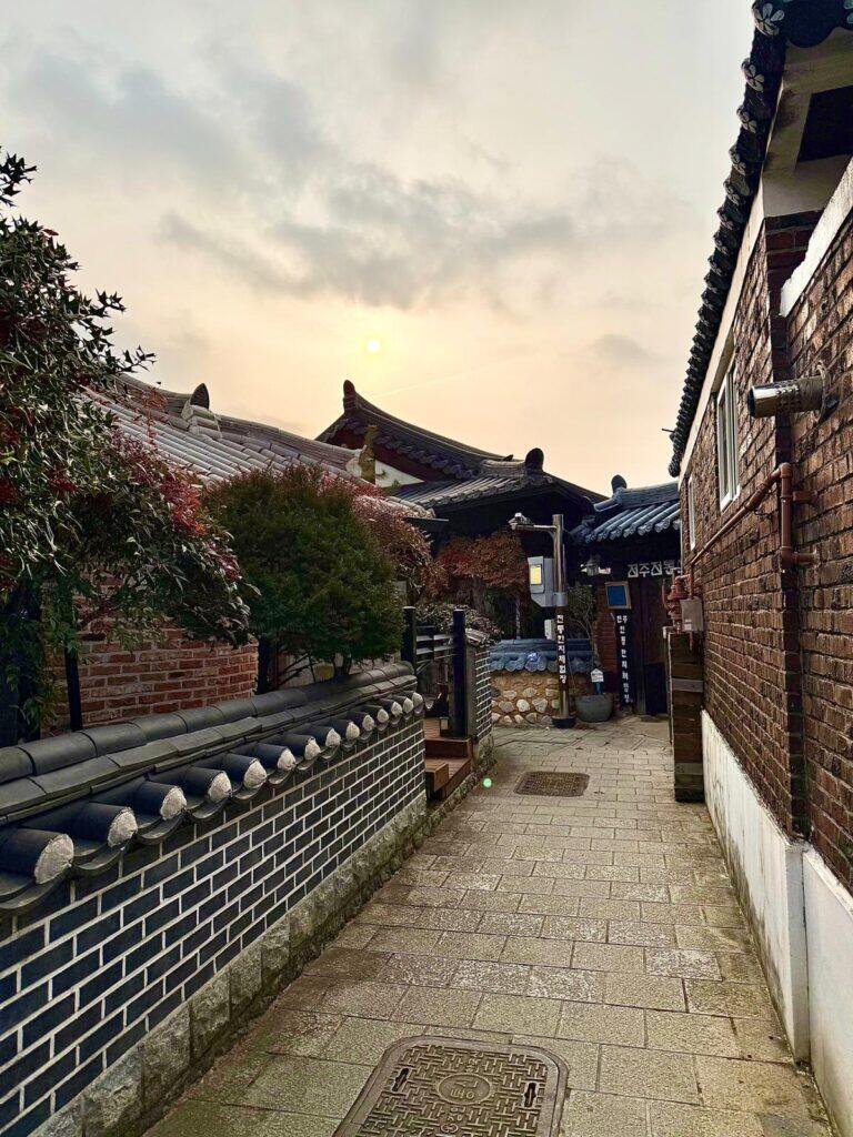 Questo quartiere non è una ricostruzione turistica recente: molte delle case risalgono ai primi del Novecento, quando l’area venne sviluppata come quartiere residenziale tradizionale in risposta all’espansione urbanistica di stampo giapponese durante il periodo coloniale. È diventato nel tempo un simbolo di identità culturale coreana, preservando l’architettura in legno, i tetti curvi in tegole nere (giwa) e l’organizzazione degli spazi attorno a cortili interni.